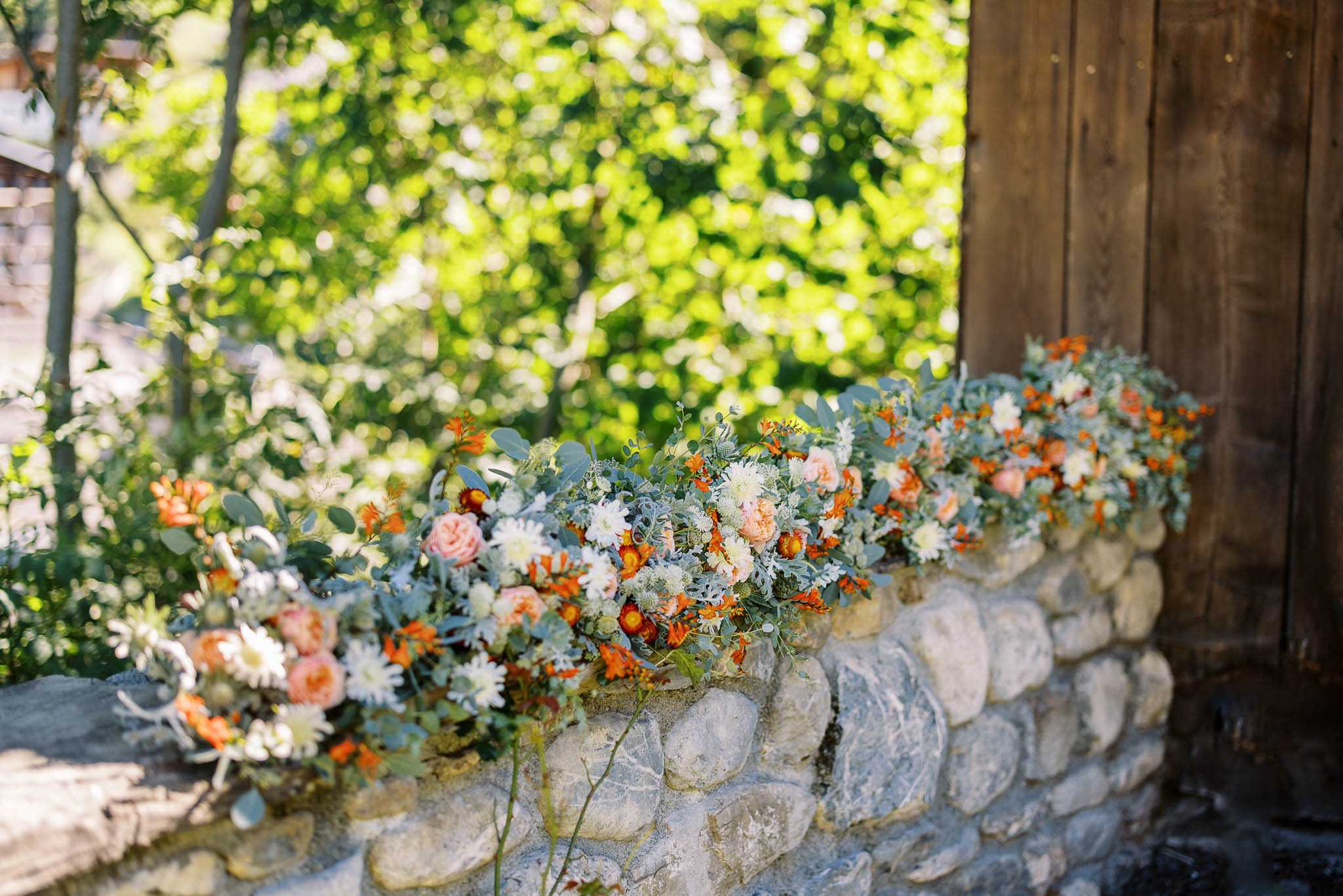 Guests gathered on the garden terrace beneath a stretch tent as cocktails and conversation flowed freely. The mountain views provided a spectacular backdrop as live music set a relaxed, celebratory mood. The couple's entrance, led by a horn band performing Carnival Culture by Shy FX, became one of the day's most joyful and spontaneous moments.